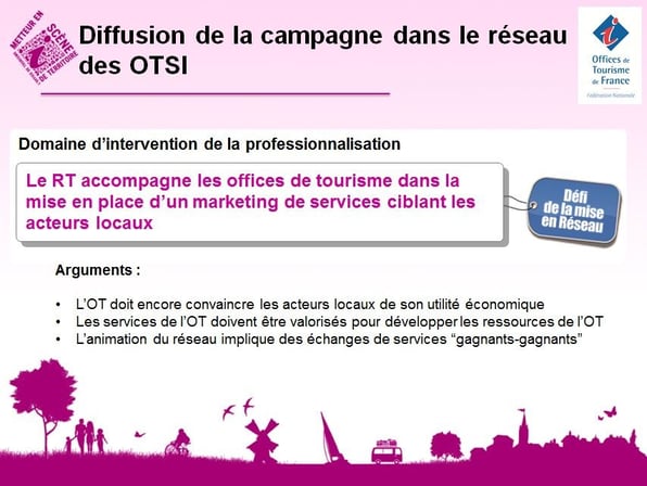 - Que chaque Office de Tourisme ou Syndicat d'Initiative ait le meilleur argumentaire pour renforcer la reconnaissance des partenaires du territoire et ainsi pouvoir justifier de la mise en place d'un marketing de services